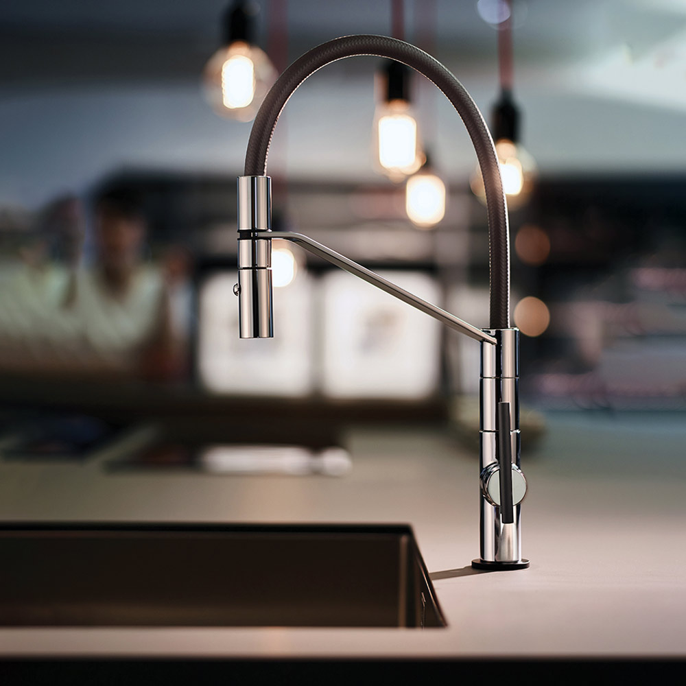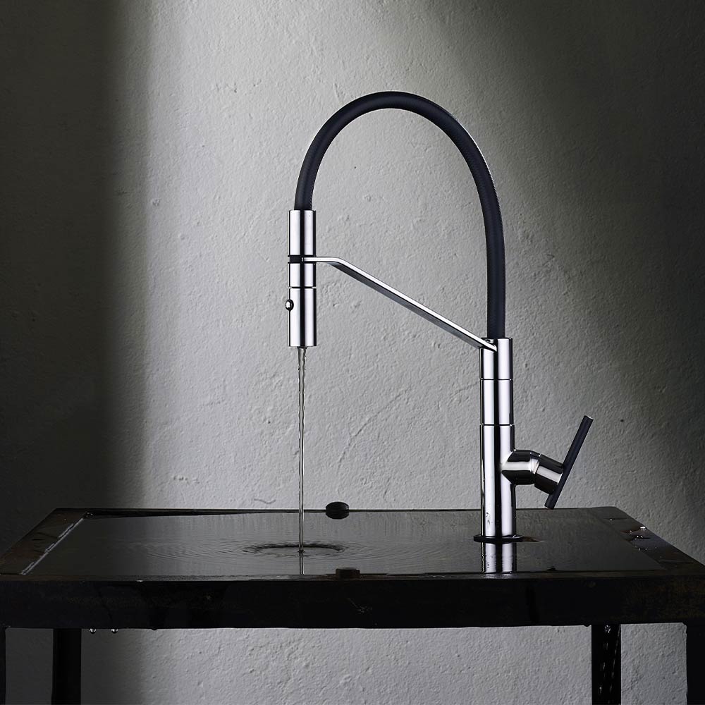 CROMO Miscelatore lavello con bocca girevole doccia estraibile 2 getti.