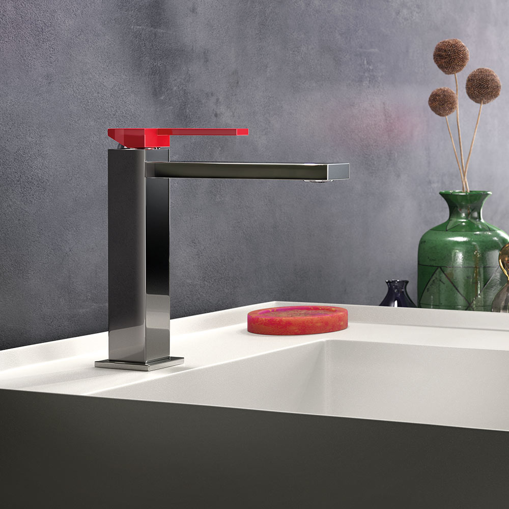 Miscelatore lavabo con piletta regolabile con tappo a scatto, flex inox di alimentazione, bocca 150 mm.